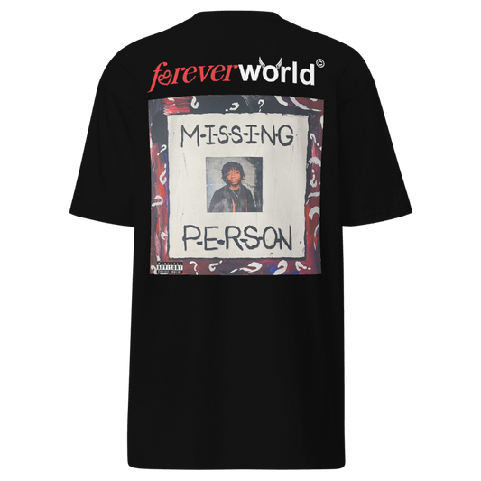 justin michael x foreverworld "missing person" tee (black)